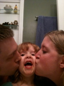 My wife is a pro at this. She likes to make up little jingles. One of her instant classics is the bath time song. After dinner when we want to get kids ready for bath time we say, “IIIIIIIIt’s BATH TIME!” And then we break out in song, “Da na na na, na na, na na na na na, Da na na na, na na, na na na na na.” I’ll let you make up the tune for that one or ask Daphne 🙂 Another jingle she made up that’s fun to sing when you’re getting ready or anytime goes like this, “Skiddly winky dinky dink, skiddly winky doo, I love you! Skiddly winky dinky dink, skiddly winky doo, I love you! I love you in the morning and in the afternoon. I love in the evening, underneath the moon. Skiddly winky dinky dink, skiddly winky doo, I loooove you!” A fun thing Sonora (and now Josiah too) likes to do is run around the neighbour’s driveway. Instead of raising my blood pressure demanding her to come I turn myself into a monster, or giant, or whatever and grunt and run and grab her playfully. Then I dump her into her car seat. With Josiah I like to wrestle his feet and toes trying to get his socks on. He loves the fact that I have to wrangle his wigglies while saying, “Get back here foot!”