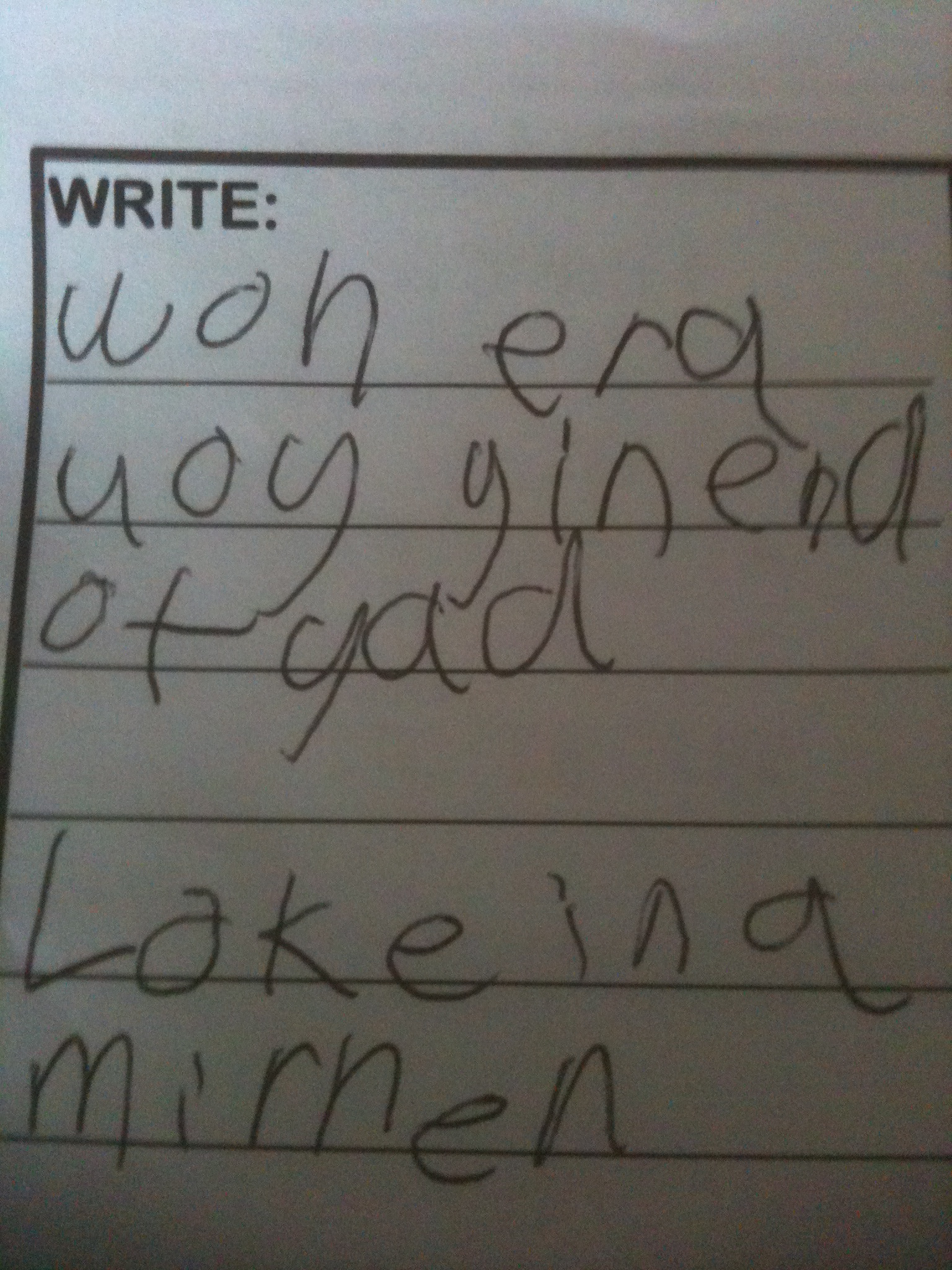 Questions: Whou do you think rote this? E.B., Gr.4 // Well, unless you’re not the person who signed then you are E.B. 🙂