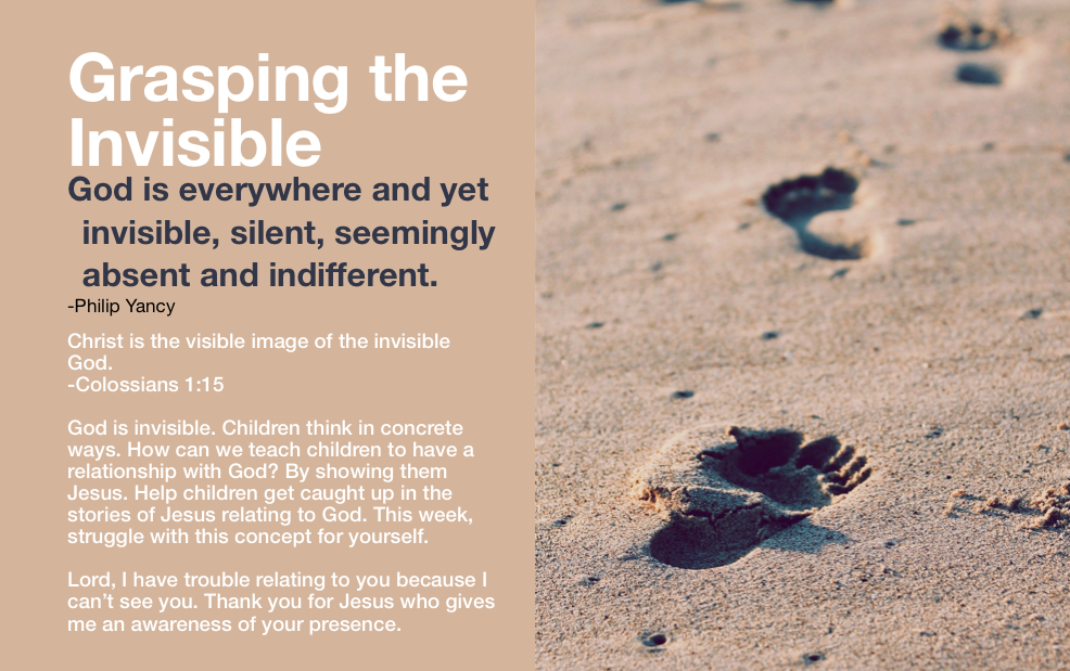 I know it’s difficult to fully grasp an invisible God, but he has left footprints. The mystery is great, but Jesus shows us what God is like.